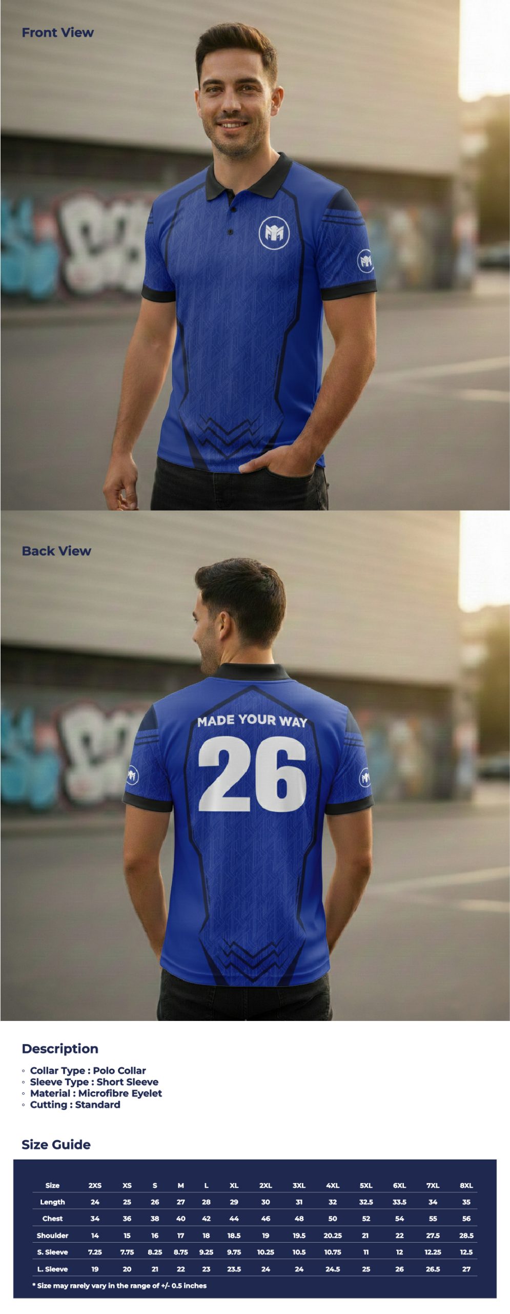 2XS, XS, S, M, L, XL, 2XL, 3XL, 4XL, 5XL, 6XL, 7XL, 8XL